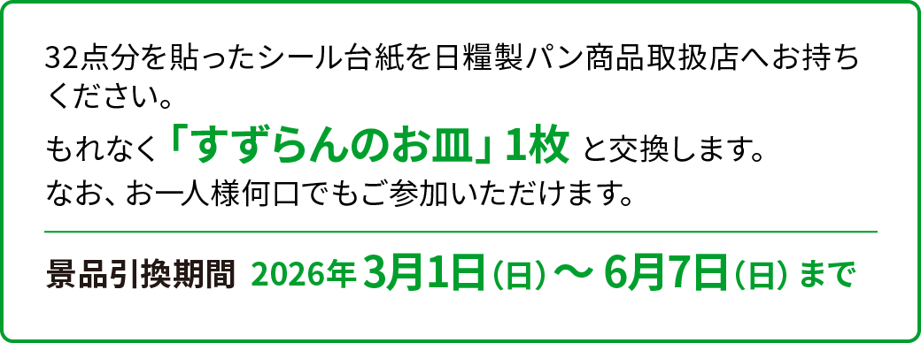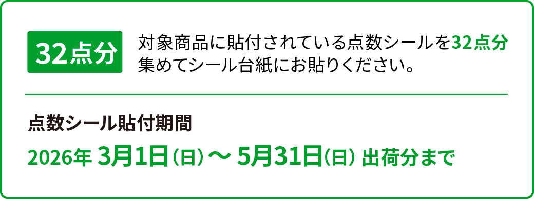 対象商品に付いている点数シール32点分を、シール台紙に貼ってご応募ください。