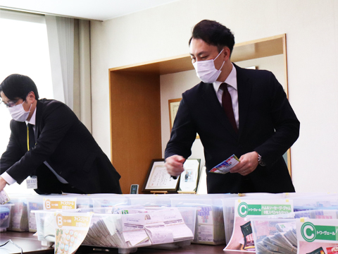 抽選会には、電通北海道様、STV札幌テレビ放送様、日本郵便札幌中央郵便局様にお越しいただき、厳正な抽選を行いました。また日本郵便からは、ぽすくまくんも参加してくれました。