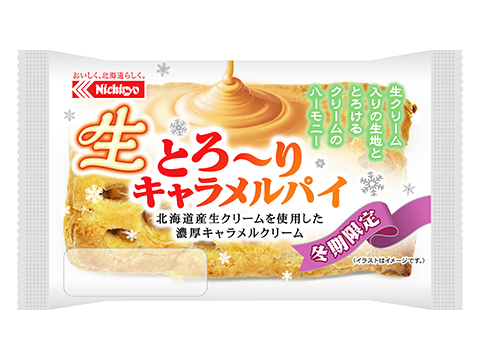 北海道産生クリーム入りのさっくりパイ生地はくちどけ感がアップ。濃厚キャラメルクリームにカスタークリームを合わせた、贅沢濃厚仕立て。