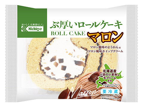 北海道産小麦のしっとりくちどけの良い生地でマロン風味クリームを巻きました。クリームの中には熊本県産和栗入りのマロン餡を使用して作った自家製栗ようかん風ダイス入り。秋から冬にかけて食べたくなる、ほっくり濃厚な味わい。