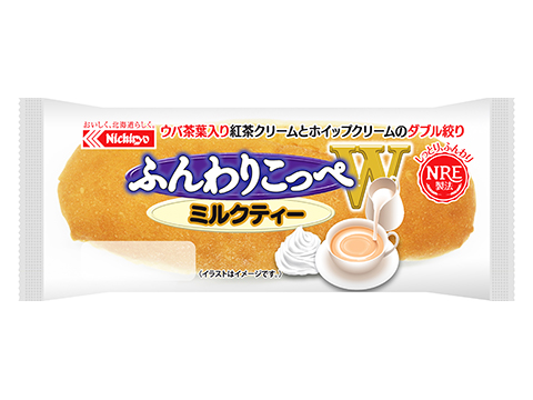 ウバ茶の茶葉入りクリームとホイップクリームをダブルサンドしたミルクティーの味わい。紅茶クリームの両サイドにホイップを絞りクリームの味わいを均一に感じる仕立て。