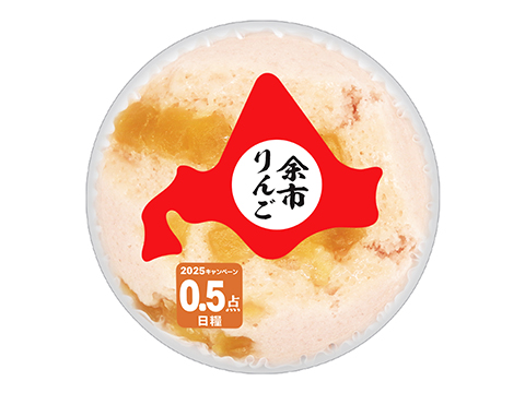 ほんのり赤いりんごを思わせるふかし生地に、北海道余市町産りんごのプレザーブをトッピング。りんごのシャキッとした食感と甘くて爽やかな味わいが、ふっくらとしたふかしと相性抜群。