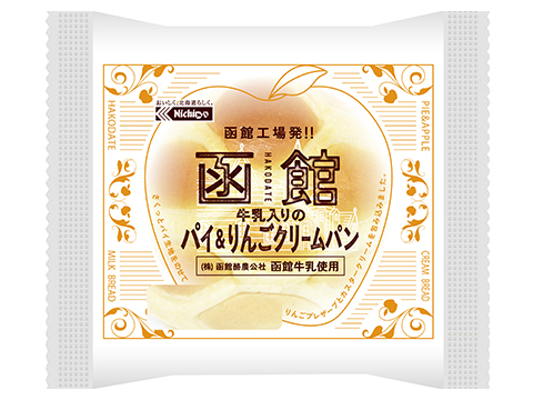 函館牛乳入りの風味あるしっとり生地に、シャキッとりんごのプレザーブとカスタークリームを合わせて包み、上面には北海道小麦使用の網目状のパイシートをのせて焼き上げた手の込んだ仕立て。