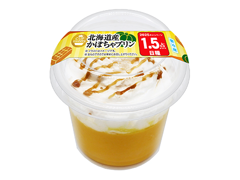 【チルドデザート】北海道産かぼちゃペーストを使用した濃厚かぼちゃプリンの上に、北海道産かぼちゃ入りの餡・ホイップクリーム・キャラメルフィリングをトッピングしました。かぼちゃスイーツ好きにはたまらない、秋の味覚のカップデザート。