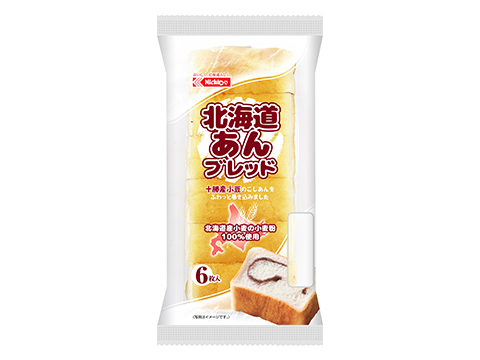 北海道産の小麦粉・スキムミルク、十勝産小豆のこしあんのブレッド。6枚入りで手軽に食べられる、十勝産小豆の甘すぎない優しい味わい。