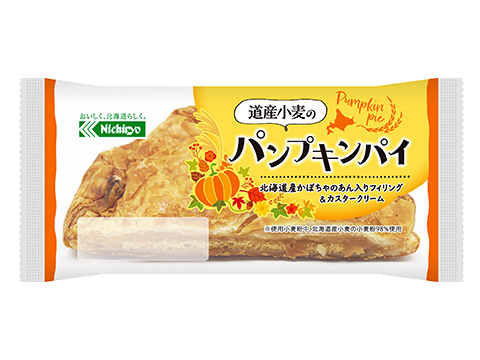 北海道産小麦の強力粉と薄力粉を使用したさっくりパイ。北海道産かぼちゃ餡入りのフィリングとカスタークリームを包み、外はさくっ、中はしっとり。