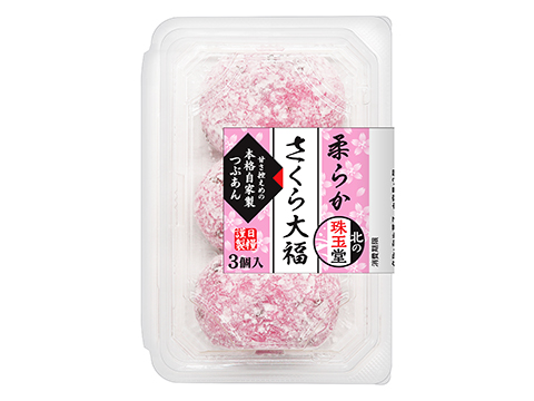 春らしい桜の香りを感じられる口当たりやわらかな生地に、甘さ控えめの本格自家製つぶあんを包んだ3個入。