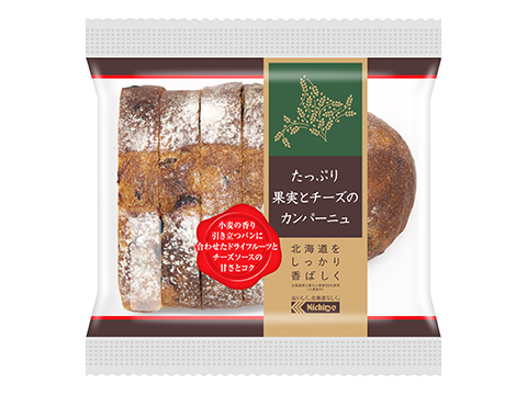たっぷりのドライフルーツとチーズのボリューム仕立て。トーストすると小麦の香りとフルーツの強い甘みが際立つ。
