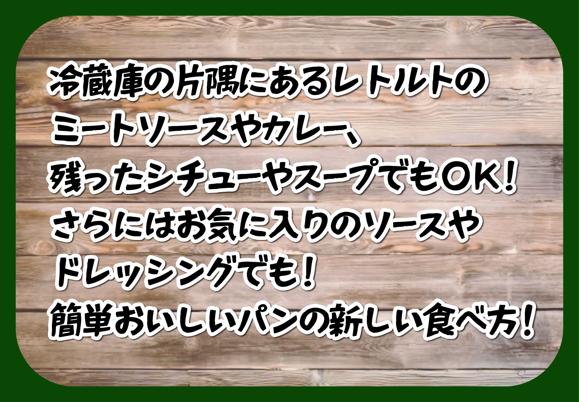 たとえば冷蔵庫の片隅にあるレトルトのミートソースやカレー、昨日の夕食で残ったシチューやスープも!さらにはお気に入りのソースやドレッシングで!